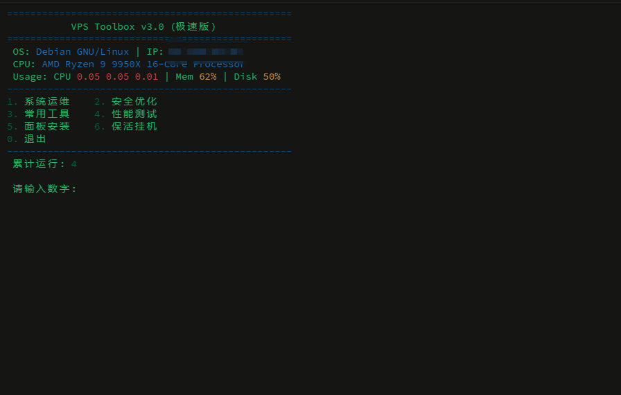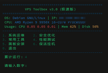 一个功能强大的Linux VPS一键管理脚本。集成系统运维、安全优化、常用工具、性能测试、面板安装、保活挂机等80+项功能。